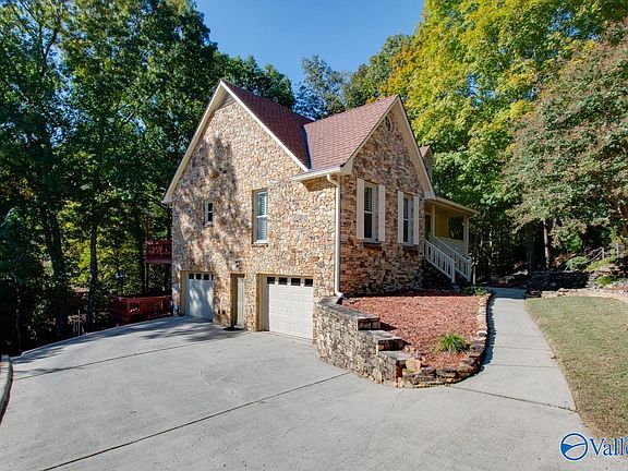 OPEN HOUSE Fri 10/25 530-7! Escape to your private retreat with this chalet-like home nestled in the woods. This lovely S. HSV 3Bdr, 3Bth haven features a peaceful water feature steps from the front porch. Relax in the den, where the view feels like a treehouse, or unwind on 2 levels of deck space—complete w/hot tub for ultimate relaxation. Main-level primary suite & kitchen have vaulted ceilings for an airy, spacious feel. Upstairs, 2 add'l Bdms share a charming hall bath w/new tile. Don't miss the oversized garage w/workshop & storage! HVAC units '15. New windows '21, New Insulated gar. doors/openers, lighting, carpet, updated kitchen cabinets '20. New kitchen counters & deck paint '24.