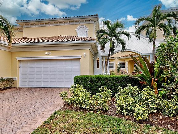 Welcome to TRIANO, an elegant Mediterranean-designed gated community located just a few minutes from the Island of Venice and the pristine shores of the Gulf of Mexico. Through columned stone arches reminiscent of Italian architecture, an enchanting brick paver courtyard leads you to the front door of a lovely 3 bedroom, 2 bath, first floor end unit. Soaring 10’ high ceilings frame expansive water views as you enter the foyer and living room. A neutral color palette greets you as you enter the open concept living area and spacious kitchen. The kitchen has loads of cabinets, granite countertops, contemporary lighting, and a closet pantry, offering tons of storage and lots of room to entertain. The primary bedroom features two separate closets and an en suite bathroom. The bathroom features dual sinks, a soaking tub and walk-in shower. The two guest bedrooms and guest bathroom are at the other end of the condo offering privacy for you and your guests. A two-car garage completes the picture. Recent UPDATES to the condo include: NEW ROOF, GUTTERS & EXTERIOR PAINT in 2024 and new CARPET in July 2024; new in March of 2021: Refrigerator, Dishwasher, Washer and Dryer, A/C System, hot water heater, and window coverings. The popular community of TRIANO is maintenance-free, has low HOA’s, no CDD fee and is surrounded by several different golf courses. Triano’s resort style amenities include a clubhouse with kitchen and social room, a fitness center and a gorgeous heated pool surrounded by relaxing waterfalls and tropical foliage. Unit 1704 is situated near the pool, clubhouse and fitness center... a great location for an active lifestyle. Just minutes away from pristine beaches, restaurants, shopping, and the charming Island of Venice so rich in history. The new Sarasota Memorial Hospital is less than two miles away, and vibrant Downtown Wellen Park which offers great restaurants, a farmer’s market, live entertainment and winter home of the Atlanta Braves is just a short drive away. Call today to schedule your personal showing… you’ll never want to leave!