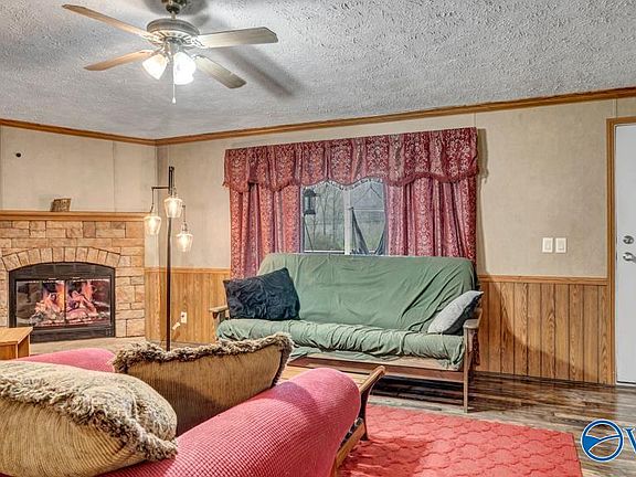 This 1740 +/- square foot home has 3 bedrooms and two bathrooms. The on-suite for the master has two walk-in closets and a large soaking tub, plus a separate shower. Very large kitchen with stainless steel appliances and a bar seating area. Metal roof was installed in 2020, all-new PEX plumbing was run from inside the home to the meter. Land is unrestricted; 6+/- acres are fenced and cross-fenced for horses or cattle. Large pole barn. Above ground pool – new equipment to be installed. Separate outbuilding with its own power and water. Two RV outlets. In-ground storm shelter. Too many amenities to list, come see this beautiful property for yourself.