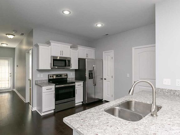 Never occupied townhome which includes matching stainless refrigerator & plantation blinds*Hardwood in main living areas*Kitchen includes granite, pantry, all major appliances & soft close cabinets*Garden Tub in master bath along w/walk-in closet & tile floor*Bonus room is HUGE & has a closet*Upstairs w/extra closet space & landing large enough for a small desk, bookshelf & more*Garage is finished & includes a garage door opener*Clubhouse, pool, sidewalks & underground utilities*