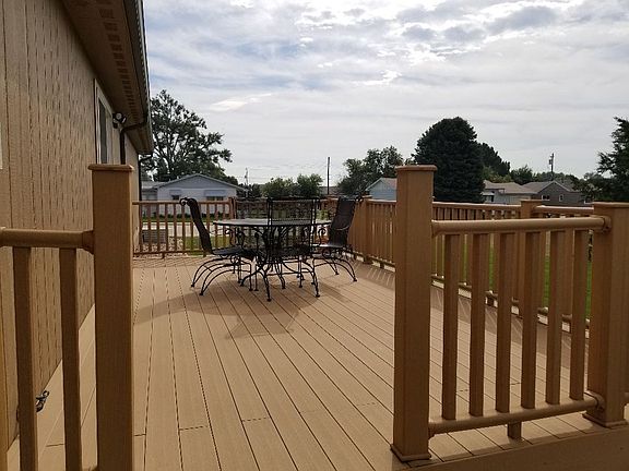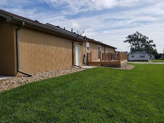 Pride in ownership is the theme for this home! Nice corner lot with trees on 2 sides! The home features 2x6 walls, 4 ft insulated block foundation with extra deep footings. Open floor plan makes this so inviting and bright. 30 ft deep finished garage with 18 ft door and self locking opener that also offers extra storage and extra covered parking space. Nice laundry room with large sink & storage! Maint. free porch and deck. Beautiful kitchen with huge pantry. master with dbl vanity, tub and shower!