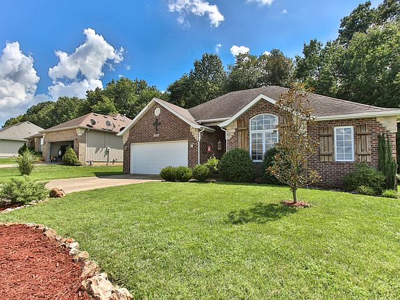 Can you say curb appeal?! This 3 bedroom 2 bath BEAUTY... in the Kickapoo School District won't last long! The open floor plan is accented by cathedral ceilings in the living room and kitchen/ dining area. Plenty of cabinet space as well as bar seating. The living area features hardwood floors, brick and tile fireplace, and large windows for plenty of natural light. The large master bedroom has a nice walk-in closet and the master bath has a double sink, jetted tub, and walk-in shower. Enjoy the sights and sounds of the Ozarks wildlife while relaxing on your very own back deck. I hope you love having deer and turkey as neighbors!
