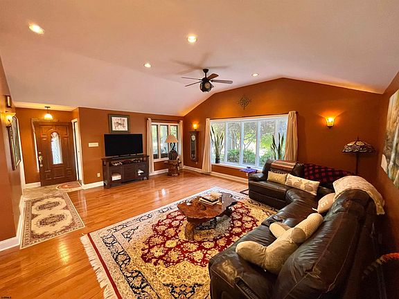 Extremely custom sprawling Ranch located right smack on bikepath between all 3 Linwood Schools! Walk in either front or rear door and...BA-BOOM…you’ll be greeted with dramatic soaring beamed ceilings in both living room and/or the unbelievable "over the top" humongous Eat-in kitchen!!! The very unique architectural floor plan will exceed your imagination. Marketed as a 3 (three) bdrm including 2 private bathroom ensuites (main level suite overlooks yard and cheerful sunrises...and an additional bsmt level MBR suite enjoys convenient outdoor entrance for private lifestyle and safety ingress/egress. Additionally, a potential huge 4th bedroom can easily be accommodated in the new basement addition w/full window for addl. light and safety. The yard and property make "PARKLIKE" an understated description. Nearly 3/4-acre multi-terraced oasis w/inground pool and Koi Pong w/ waterfall. Cherry island kitchen, hardwood floors, an incredibly designed major Annex was completed 2016. The detached garage/poolhouse and A+++ Linwood location make this a tremendous value (incapable of being duplicated!)