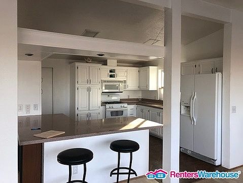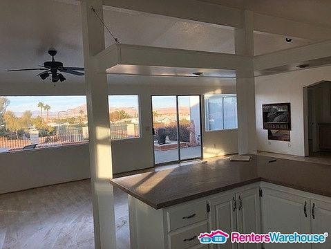 Huge open concept kitchen, living room, and dining room home combination in a an adult community located near Warm Springs and Stephanie with excellent access to shopping, dining and highways. This home boasts 2 large Master suites, one bath has secondary guest access, fresh paint , all wood flooring high ceilings with ceiling fans. Home has well planned low maintenance front yard. A back patio with amazing views, impressive natural gas fire feature, natural gas fire pit and beautiful landscaping. Homes property backs to the club house, swimming pool, Jacuzzi, putting green, state of the art fitness center, tennis courts and more. Cats allowed with additional deposit.