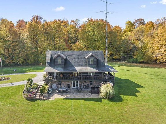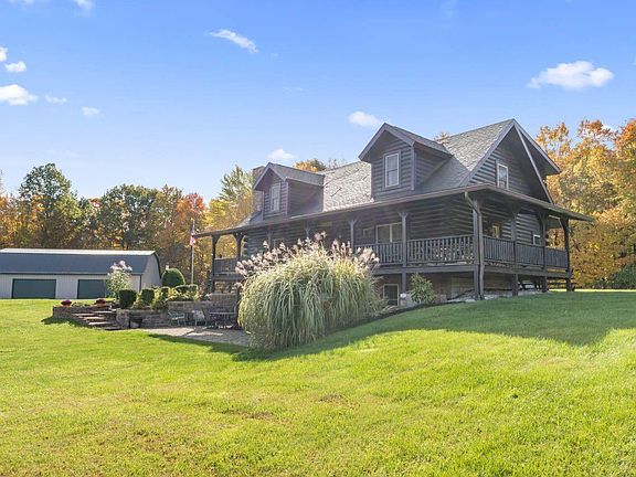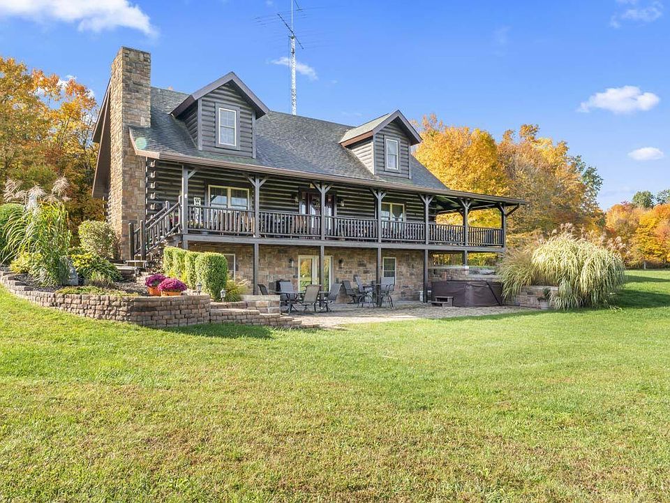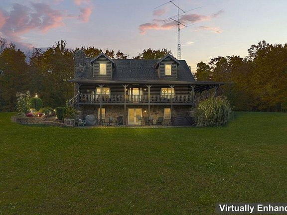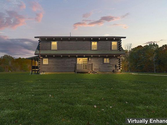 NEW Price!! Enjoy this perfect CAPE COD Log Home on almost 23 acres of PRIVATE wooded site! This home has designer excellence through and through! A prestigious kitchen with beautiful Cabinetry (soft close), Thermadore Appliances w/Double Oven, Center Island w/Shelves, Mixer Station, Gas Stove-Pot Filler w/Griddle & Granite Counter Tops! CUSTOM made SOLID maple Cabinets in Kitchen & Bathrooms! Impressive Wood Flooring, Wood Burning FP, Pine Ceilings, Moen Faucets, House Generator, New Back Deck, Pond, Hot Tub & More! A large loft that overlooks the Great Room & Kitchen! A partially wrap around porch to relax/entertain. Also, the ENORMOUS pole barn for storage/parking & fun. Sit on the Lower-Level Walk-Out Patio to calm down for the day/evening! ONLY 25 minutes to Intel!!!