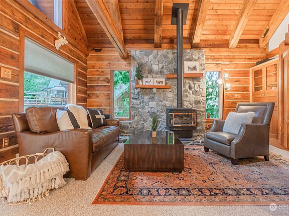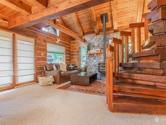 This unique log cabin is crafted from re-claimed B.C. bridge beams and is in immaculate condition. The beautiful 2bd 2 bth cabin w/loft is located on a quiet cul-de-sac in the gated Mt. Baker Rim community. Relax on the spacious trek deck or the vintage Mt. Baker Ski area chair lift swing in the yard. There have been many improvements and upgrades to this authentic cabin. Easy access to Mt. Baker Ski area, hiking, mountain biking, river rafting, and fishing. Gated community w/2 tennis courts, club house, and community pool.