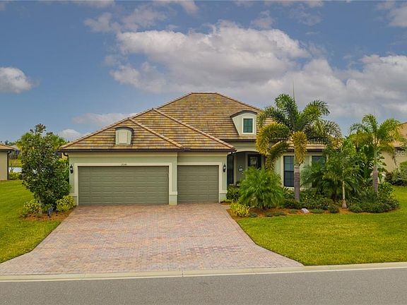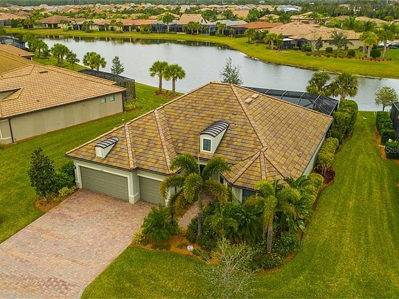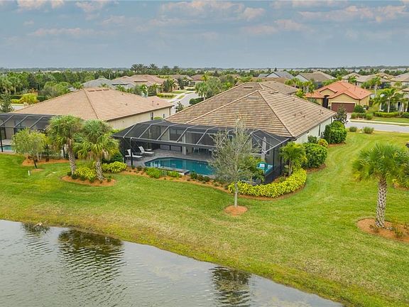 This magnificent smart home is the highly sought after Pinnacle model with fabulous lake views. It features over 180,000 in upgrades with everything you can possibly imagine. The kitchen has quartz countertops, upgraded cabinets, backsplash with underneath lighting. All appliances are upgraded, there is crown molding throughout and the master has tray ceilings, all closets and bathrooms have been upgraded as well. New ceiling fans and lighting along with new light switches. The blinds throughout are remote controlled as well as the hurricane Kevlar screens on the patio. The outdoor living area has a gas heated pool with an oversized outdoor kitchen and a clear view screen.The patio cage has sparkle lighting built in and the house has lush mature landscaping as well as outdoor lighting.This home comes with a warranty through 2024.
