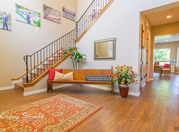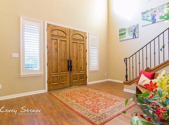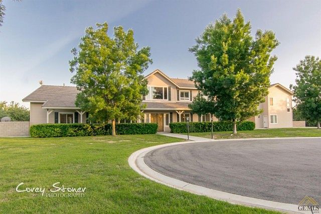 Escape the suburban ordinary. Hidden away among a lush orchard of almond trees, showcasing 5 bedrooms, 5.5 bathrooms, and an office, this 6,197 sq. ft. ranch inspired custom floor plan promotes a dramatic sense of openness with modern elegant touches like hardwood floors, custom granite counters, rounded corners, plantation shutters, contemporary wall treatments, whole home surround sound, wrap-around exterior porch with outdoor grilling island, and lush landscaping. The contemporary kitchen is smartly designed in walnut finished pine and outfitted with GE Monogram built-in stainless steel appliances, including dual convection ovens, Dacor 5-burner gas stove, Bosch dishwasher, center island, granite countertops with matching backsplash. The formal dining room with trey ceiling and custom painted walls overlook the stunning orchard views, and complements the gorgeous oak built-in wine cellar.This luxurious home comes complete with a 3 car garage and a well-appointed studio apartment.