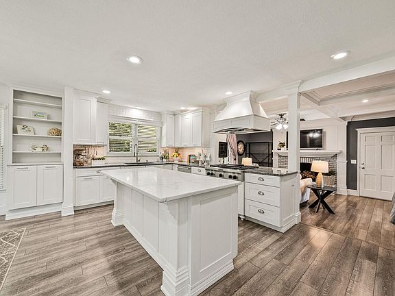 - 1st Bdrm En Suite, Breakfast Bar, Ceiling-9+, Tray Ceiling(s), Ceiling Fan(s), Beamed Ceilings, Vaulted Ceiling(s), Central Vacuum, Walk-In Closet(s), Stone Counters, Crown Molding, Eat-in Kitchen, Entrance Foyer, Soaking Tub, Open Floorplan, Double Vanity, Stand Up Shower, Tub and Separate Shower, Tub/Shower Combination, Main Level Bedroom Suite, Formal Dining Room, Great Room, Custom Cabinetry