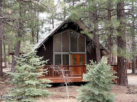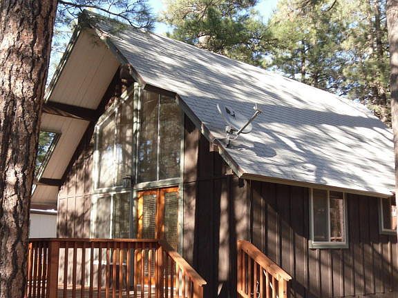 Great little cabin two lots from the National Forest and a quiet cul de sac. Cabin is located on a lot and a half with plenty of room for expanding. Three new redwood decks, double pane and single pane windows, large utility room with a washer and dryer. Two storage areas, fenced in backyard, heavily landscaped, wood burning stove, propane wall furnace, updated kitchen with a dishwasher. Main level is a large living area that a portion could become a bedroom, upstairs is a large loft bedroom with wall closets and double doors leading out to one of 3 redwood decks. A full bath on the main level.