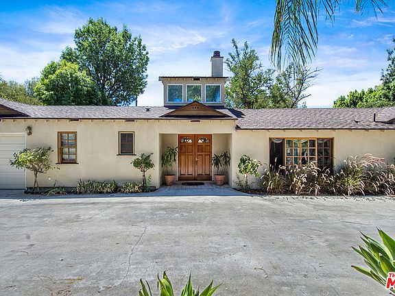 Sherwood Forest Secluded Mini-compound with tons of privacy. Electric gated entry with RV access, 2 car garage plus circular driveway. Beautifully landscaped and tropical gardens greet you as you enter into a 2 story sun-drenched foyer/atrium leading to one of the 2 bedroom "wings". The East "wing" affords a view of the fountain and courtyard through a set of french doors, and features its own up-dated bath+ walk-in closet. Interior features such as hardwood floors, ceiling fans, recessed lighting, coved ceiling, and built-in cabinetry throughout. Granite accented kitchen w/bay window overlooks the rear grounds. True Formal Dining room. Sitting alcove/library off of liv room too. Detached guest house (apprx 800 sf per owner) with its own separate living room, bedroom, kitchenette, bath, and wheelchair accessibiity. On top of all that - another separate pool table sized recreation room with vaulted ceilings, bar, and sliding door to let the outdoors in! Olympic style pool, lush gardens.