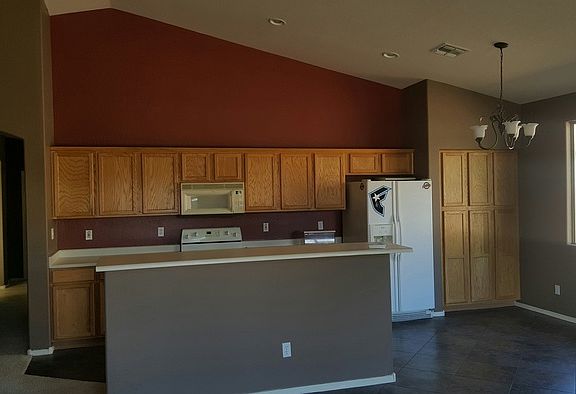 Beautiful 3 bed/2 bath split floor home in Surprise! Extended 2-car garage includes built-in workbench! -Split floor plan -3 bed/2 bath -1447 sq ft -Great room opening to backyard covered patio -Covered patio backs up to common area -Kitchen includes pantry, kitchen island, disposal, dishwasher, refrigerator, electric range/oven, built-in microwave -Master bedroom with separate entrance to backyard patio -Washer/dryer included -Ceiling fans -Extended 2-car garage includes built-in workbench -Assistive animals only Broker: Impero Property Management LLC 530 E McDowell Rd Ste 107-285 Phoenix, AZ 85004 Contact for details.