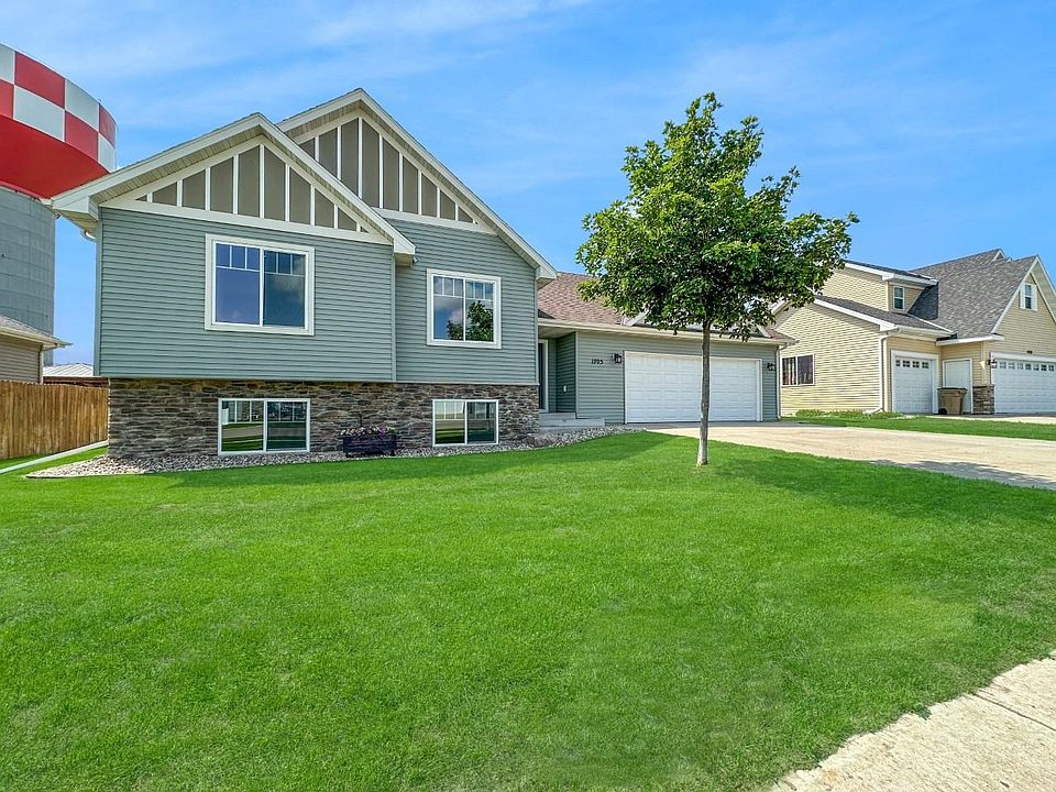 Welcome to 1705 26th Ave NW, located in the highly sought-after Pheasant Run Development. This extensively renovated home boasts modern updates and spacious living. The main floor features two bedrooms, including a spacious primary suite with an ensuite bath that offers a tiled shower, dual sinks, and a walk-in closet. The open and inviting living spaces are enhanced with all-new interior paint, hardwood flooring, and upgraded lighting. A refreshed fireplace serves as a cozy focal point in the living room, while the kitchen delights with a brand-new appliance suite, perfect for culinary enthusiasts. The daylight lower level features an oversized family room, ideal for relaxation and entertainment, along with two additional bedrooms and a third full bathroom. The well-appointed laundry room offers plenty of cabinets for ample storage and functionality. Additional features of this home include an attached double-deep garage with a gas line for a future heater, fluorescent lighting, and a freshly painted concrete floor. The freshly seeded yard, complete with a working sprinkler system, ensures a lush, green lawn. Conveniently situated in the Pheasant Run neighborhood, this home is close to the new Minot North High School, Ramstad Middle School, walking paths, and offers easy access to the 83 Bypass. Don’t miss the opportunity to make this beautifully renovated property your new home. Schedule a viewing today and experience the charm and elegance of 1705 26th Ave NW for yourself!