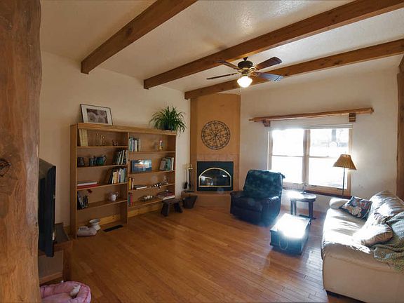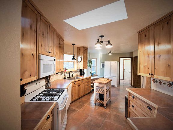 Updated country kitchen, beautiful wood and tile flooring with log lighter fire place, beautiful viga beams in living area, sky lights through out, beautiful open layout, fully finished garage, with fully finished shop in back. rear yard includes back yard access and RV pad,