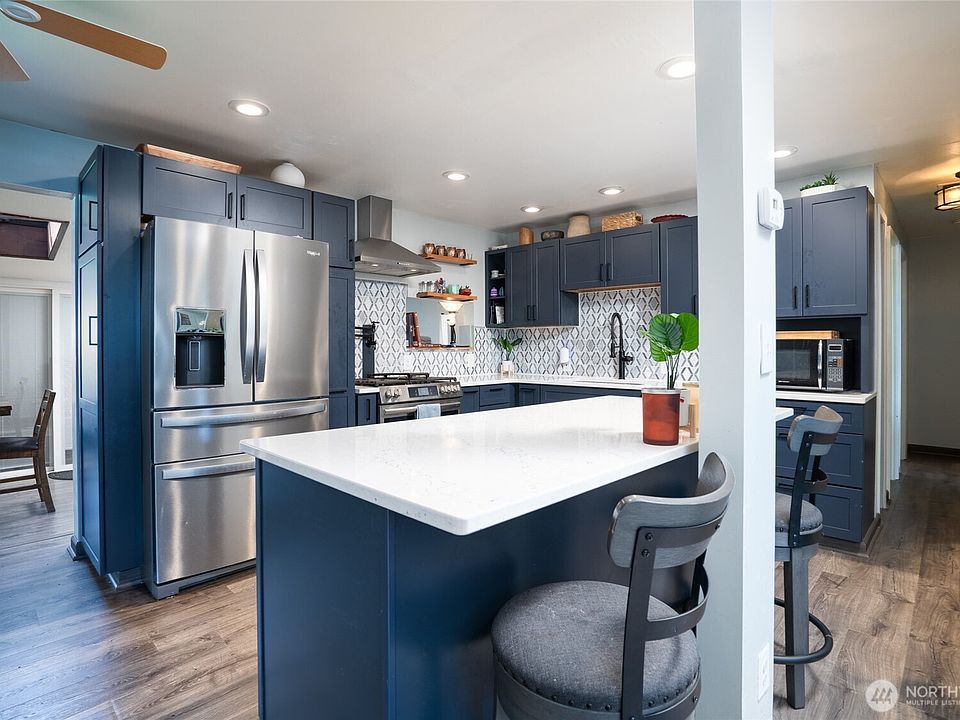Spacious 4 BEDROOMS, 2-bath home in a prime location close to schools and parks. Open concept layout featuring a FULLY remodeled kitchen with quartz countertops, new cabinets and eating bar that opens to the living room. Huge new walk-in pantry and new flooring in main living area. Dining area is located in a charming sunroom that leads out to a fenced backyard—perfect for entertaining or relaxing. Private master and its own bath, while three additional bedrooms w/original oak floors and second full bath are on the opposite end of the home. Additional living space includes a family room and versatile office/den with a private entrance. Bring your ideas for further upgrades! 9148 sq ft lot! On a dead-end street!