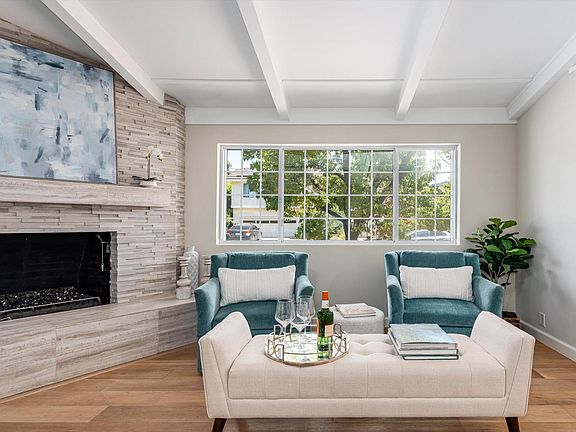 An atmosphere of elegance prevails in this beautifully updated residence, surrounded by beautifully landscaped gardens. This graceful single-story home is in picture-perfect condition & move-in ready. Brilliantly remodeled with an elegant touch and high-quality materials, it showcases contemporary style through an easy-flowing floor plan that creates a comfortable lifestyle with spacious rooms and a wonderful sense of openness. The spacious living room features a large window, while the elegant dining area features gorgeous wood-beam ceilings, a fireplace, and beautiful wood floors throughout. The modern, sophisticated country kitchen showcases gorgeous granite counters, a butcher block center island, elegant kitchen cabinets, a built-in bar counter, and a roomy breakfast nook that opens to an inviting patio for outdoor dining and entertaining. Beautiful garden entry with stunning hydrangea bushes surrounding the house, featuring apple trees, a fig tree, a Meyer lemon tree, and an ideal spot to build raised garden beds for a bountiful Napa Valley lifestyle. This home is well-suited for the discerning buyer seeking comfort, ease, and small-town charm, ideally located near downtown Calistoga with convenient access to shopping and fine dining. The pride of ownership prevails.