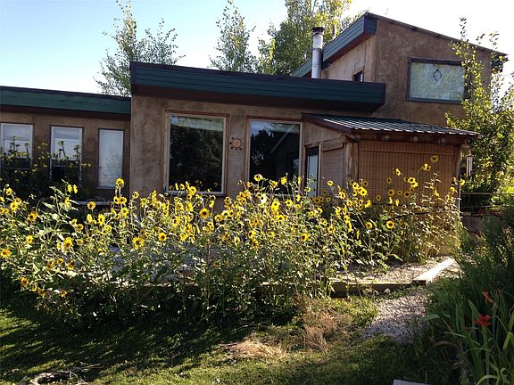 Welcome to this Sapphire Mountain Oasis! This beautiful 2 bedroom, 1 bath property sits on 5.76 acres and boasts picturesque landscaping featuring a wide variety of mature Aspen, pines, Mountain Ash, Tamarack and fruit trees. Gardens boast perennial bulbs and plants that bloom from spring to late fall. Main house is Earth Bermed featuring passive solar windows, wood stove, concrete mass floor, custom ironworks, 200 amp electric service, root cellar, custom window blinds, mud room, propane stove, refrigerator, washer included. Outbuildings include wood fired sauna, storage shed, wood shed, and 17 x 25 studio. 2 wells on the property. Please see amenities sheet for full summary description. "Welcome to this Sapphire Mountain Oasis! This beautiful 2 bedroom, 1 bath property sits on 5.76 acres and boasts picturesque landscaping featuring a wide variety of mature Aspen, pines, Mountain Ash, Tamarack and fruit trees. Gardens boast perennial bulbs and plants that bloom from spring to late fall. Perfect for those who appreciate the beauty of nature. Irrigation provides ample watering on a timer system. This energy efficient and super-insulated passive solar home is earth bermed, which means it's north side is built into the earth for better temperature regulation. The property features passive solar southwest facing windows, allowing for plenty of natural light to flow into the home all the while heating the floor mass for radiant heat. Custom insulated window blinds provide shade when needed to assist with the natural earth cooling the home on warm days. The root cellar access from the kitchen provides ample storage for your food supplies. The property also offers a wood stove in the main house for cozy winter nights. For those who love green living, this property is perfect for you! The wood-fired sauna outbuilding and art studio outbuilding offer the perfect opportunity to unwind and connect with nature. Relax on the west facing porch to watch the sun set behind the Bitterroot Mountain Range. The 2 car, carport is available for sheltered parking. This rustic property is truly a unique gem, perfect for anyone looking to embrace a sustainable lifestyle while surrounded by the natural beauty of the Bitterroot Valley. Come see this oasis today and start living your dream of green living!"