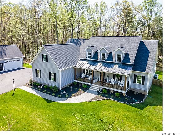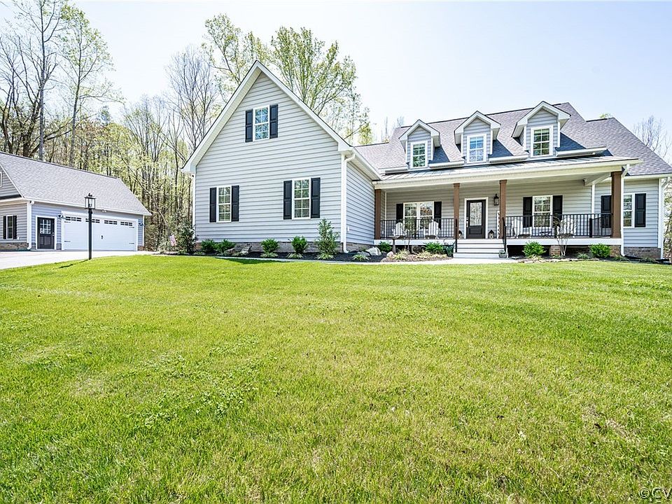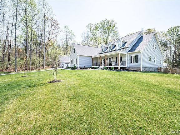 BUILT IN 2022, THIS METICULOUSLY MAINTAINED HOME IS READY FOR NEW OWNERS! A 31X7 front porch welcomes you to this 5 BDRM 3 BA cape cod home located on 5 acres. As you enter you will find a formal dining room with custom mouldings, family room with C/FAN and gas FP that is open to the kitchen with island with farm sink, dishwasher and breakfast bar, SS APPL and gas cooking, GRAN C/TOPS and tile backsplash, built in sideboard, 7X3 pantry and 13X11 eat in area and French doors that lead to a 18X14 screened porch. The primary bedroom with tray ceiling and C/FAN, ATT primary bath with garden tub, tiled shower, double vanity with storage and extra vanity area, 7X3 toilet closet, tile floor and 14X11 custom WIC, bedrooms 2 and 3 each with C/FAN and 5X3 closet, full hall bath with single vanity with storage, toilet and tub/shower and the laundry room with built ins and tile floor and the "drop zone" that leads to the 2 car garage complete the first level. The fenced back yard and 16X14 deck are the perfect place to relax or to entertain. The second level boasts a bonus/rec room, full bath with single vanity with storage, toilet and tub/shower and bedrooms 4 and 5 each with C/FAN and 6X2 closet. LVP throughout the first level and stairs, carpet throughout second level. ATT 30X23 2 car garage, DET 23X23 2 car garage, irrigation, conditioned crawl space, whole home generator, water filtration system, high speed internet and CAT-6 network cable throughout home. Located close to the interstate and 15 minutes from Short Pump this is the perfect location, SCHEDULE YOUR TOUR TODAY!