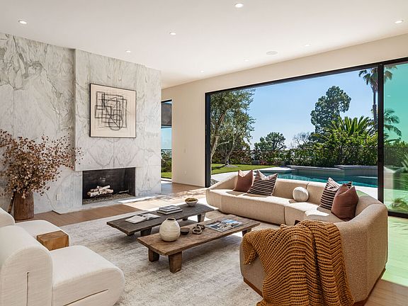 Welcome to this Amangiri inspired home that captures the spirit of desert tranquility, creating the ultimate oasis in the heart of the Trousdale Estates. Set on a private promontory along one of the neighborhood's most desirable streets, the home blends effortlessly with its surroundings, offering both timeless appeal and refined comfort. A fully private gated entry opens to a long, olive treelined driveway leading to a spacious motor court. Beyond the grand 12-foot pivot door, light-filled interiors span more than 6,300 square feet of living space, defined by clean lines and natural textures. Warm tones of wood, marble, and travertine bring depth and sophistication to every space. With six bedrooms, nine bathrooms, and impeccable craftsmanship throughout, this residence offers the perfect blend of privacy, elegance, and modern indoor/outdoor California living. The open floor plan flows easily through the main living areas, where a dramatic, double-sided fireplace anchors the living and dining rooms. A comfortable library lounge connects to the chef's kitchen and extends seamlessly outdoors, striking an ideal balance between openness and retreat. The primary suite features dual walk-in closets and bathrooms and opens directly to the backyard oasis. The backyard is a private escape of its own with an expansive grassy pad, a large terrace, a sleek infinity pool, and sweeping views of the city skyline, Century City, the Santa Monica Mountains, and the ocean. This is a one-of-a-kind trophy property with the finest finishes, attention to detail, and quality in the heart of Beverly Hills.