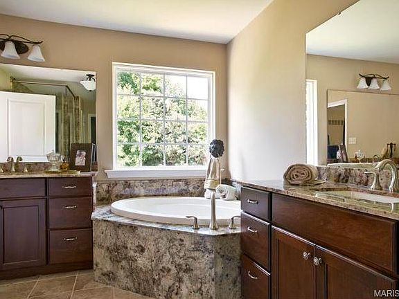 Brand new, Executive home in a FANTASTIC location! Welcome home to a gorgeous gated community and a private cul de sac lot. The Waterford 2 story has a brick elevation with stone detail, James Hardie fiber cement siding, architectural shingles, 3 car side entry garage, full sod, prof landscape and an irrigation system. This dynamic open floor plan has hardwood floors, custom millwork, gourmet Kitchen with center island, large Breakfast-Hearth Room, custom cherry cabinets, granite countertops, Jenn-Air stainless steel appliance package with double oven and gas cook top, walk in pantry and a gas Fireplace. The second floor is amazing with a spacious Owners Suite with coffered ceiling, 3 large secondary bedrooms, walk in closets in all bedrooms, jack and jill bath, Loft area and second floor laundry. This fantastic location has easy access to the Page Ext (364), Highways 94 and 70, Creve Coeur Park, Lambert International Airport, the Katy Trail and Historic Main Street in St Charles. The community is adjacent to Wapelhorst Park, one of the areas finest parks.