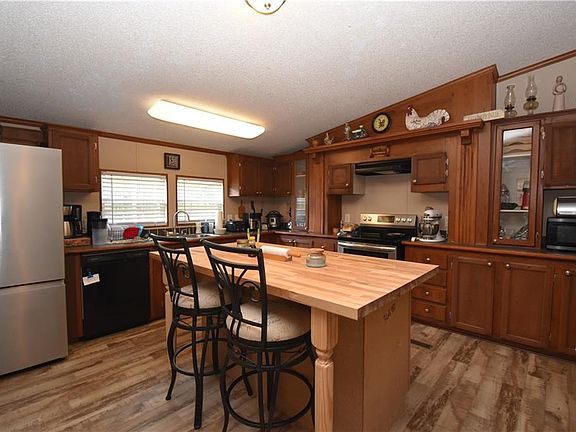 Welcome to your secluded oasis on 7.55 acres of mature trees and abundant wildlife. This 2009 Southern Energy doublewide mobile home is meticulously maintained with recent flooring upgrades, ensuring a fresh and clean interior. With four spacious bedrooms and two full bathrooms, there's room for everyone to spread out and enjoy. The property features a large 24x30 workshop/storage area, perfect for hobbies or additional storage. Both front and back covered porches provide serene spots to relax and take in the natural beauty around you. The attached double carport adds convenience and protection for your vehicles. Built with sturdy construction and equipped with extra straps for a Wind Zone 2 rating, this home offers peace of mind in any weather. Additional amenities include a 30 amp RV hookup with sewer and water, making it ideal for visitors or extra accommodation. The kitchen is a chef’s delight, boasting tons of beautiful cabinets and a large island, perfect for meal prep and entertaining. Cozy up in the large living area by the wood-burning fireplace. The amazing primary suite feels like a retreat, offering a perfect space to unwind. This property is a sportsman’s dream, providing ample space and opportunity for outdoor activities. Don’t miss out on this unique and tranquil property. Schedule your viewing today!