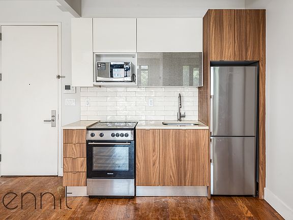 Rent Stabilized 1 bedroom apartment with Private Deck! In Gorgeous new development, Luxury elevator building with Gym, Parking, Laundry room and Roof top access! Crown Heights A & C Express Trains at Utica Avenue and 2 / 3 /4 / 5 Express trains at Utica Avenue all within a few blocks! HUGE living room with widows allowing tons of natural light, modern kitchen with stainless steel appliances, bathroom with tub and shower, tons of sunlight, large private deck! Elevator Gym Fitness Facility Rooftop Roof Deck Laundry in the building parking balcony terrace central air and hear Verizon fios guarantors accepted pets allowed *upon approval Showing by appointment only