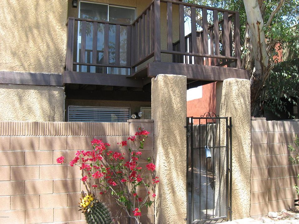 2Br, 1.5 Bath, 2 miles North of University of Arizona. Two story, tile in kitchen and baths, new vanity in bath, new carpet, new wood laminate in extra room, new space saver microwave, walled yard, security gate, balcony off one bedroom, covered parking. Laundry closet in unit, end unit with larger lot.$135 HOA includes water and sewer, common area maintenance.