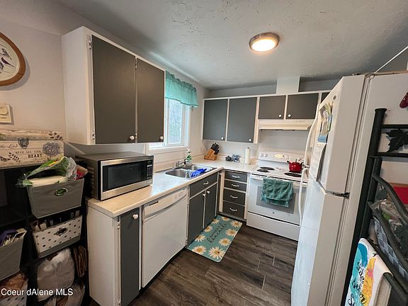 Welcome to this beautiful duplex in Coeur d'Alene, ID! Each unit has 3 bedrooms, 2 modern baths, a 1-car carport & 2 cozy wood fireplaces. Basements feature patio doors leading to fenced yards. Enjoy durable LVP flooring, fresh paint, new carpet & modern lighting. Kitchens include 2 ovens, 2 fridges, 2 dishwashers, 2 water heaters & 2 electric stoves. Exterior has T1-11 paneling painted 3 years ago, vinyl windows. Don't miss the opportunity to own this duplex! One side is vacant and very easy to show.