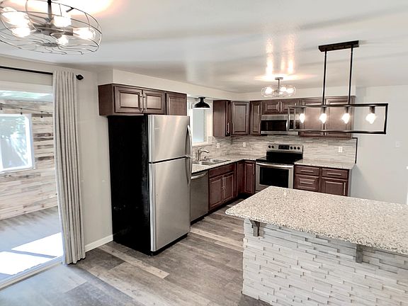 This newly renovated contemporary duplex is available immediately. With a 75 Walk Score, you are just steps away to shopping, restaurants, Lake Loveland, and golf. Travel is easy with quick access to E Eisenhower Blvd, downtown Loveland, and I-25. This 2130 sqft. 3 bedroom, 2 bath home is great for entertaining. The home has been freshly painted, and has a remodeled kitchen with granite countertops. All kitchen appliances are stainless steel and includes a refrigerator, microwave, dishwasher, and electric range. The kitchen also has an island and adjacent dining area with built-in storage drawers and shelves. 2 bedrooms with large closets are located upstairs and share a remodeled bathroom with tub and shower. The downstairs basement is completely finished with a large family room/rec room, separate office, legal bedroom with egress window, and a new bathroom with shower. There is also a laundry room with built-in storage cabinets and a Samsung washer/dryer. The private backyard has a 6 foot privacy fence and covered patio. There is also an enclosed sunroom with reclaimed wood, corrugated tin ceiling, and string lighting. The home has a sprinkler system and lawn service is included in the rent. The home has a spotless one car garage with a new gray epoxy floor. $2200/month. $2200 refundable security deposit. 1-year lease. $52 nonrefundable application fee per adult. Pet considered with owner approval and additional security deposit. Renter's Liability Insurance in the amount of $100,000 required. No Smoking. Utilities paid by resident: Gas and Electricity, Cable TV, Internet. $90.00 fixed monthly water fee,Trash/Recycling Utilities included: Yard service