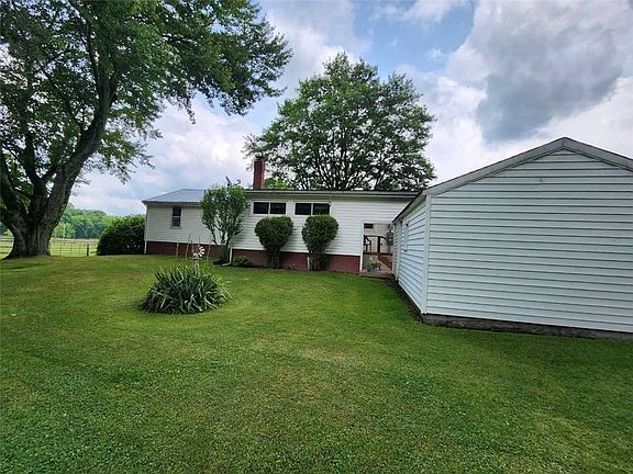 This lovely home sits on a picturesque four-acres with fenced-in areas for horse grazing. There are 5 garages, but the double car garage in the back has been turned into two horse stalls. The home is a ranch with 3 bedrooms, 2 1/2 bathrooms, a kitchen, dining room and family room on the main level. On the lower level, there is another small kitchen area, living room, bedroom and full bathroom. The laundry is also located on the lower level. The septic is located in the back of the home and the well is located in the front of the home. This property has been very well maintained over the years. It also has a metal roof.