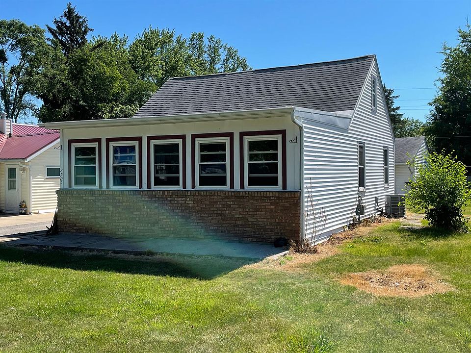 Location Location Location. Living room, eat in kitchen, two bedrooms, and full bath on main. Second story is partially finished for third bedroom, needs finishing touches completed. Main also features nice large enclosed porch. Basement offers laundry hook ups. Home has been rental for several years. Needs cosmetics and some upgrades thru out. High efficiency furnace, central air, updated electric. Detached two and one half garage with work shop. Take a look.