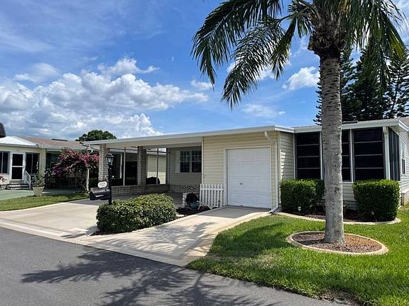 Step right up and come inside this light and airy, open concept home! The outside curb appeal is fantastic with a well-manicured lawn and tandem deco drive featuring a separate driveway for your golf cart. Once inside, you'll notice a neutral palette throughout the main living space and kitchen. The enclosed lanai is the perfect area for a den or year-round sunroom where you can enjoy the Florida weather. The roof is estimated to be around 7 years old and A/C is 9 years old. Don't miss out on your chance to call this house "Home". Purchase includes all furniture pictured plus ONE YEAR FREE GOLF! Contact our on-site Resale Office today to schedule a showing!