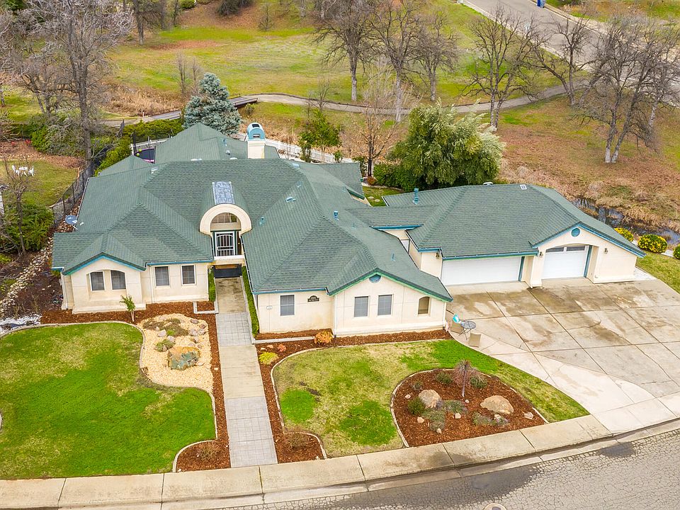 Stunning home with 3 bedrooms, 3 bathrooms and oversized 3 car garage with storage and workshop. This captivating home backs up to the Gold Hills golf course. The large master bedroom has lots of natural light with vaulted ceilings with two master bathrooms. The home includes a 650 square foot 1 bedroom, 1 bath in-law suite/apartment with a kitchen and private entry. The lush and green, landscaped backyard has a golf course view and 2 separate patios that are great for entertaining!