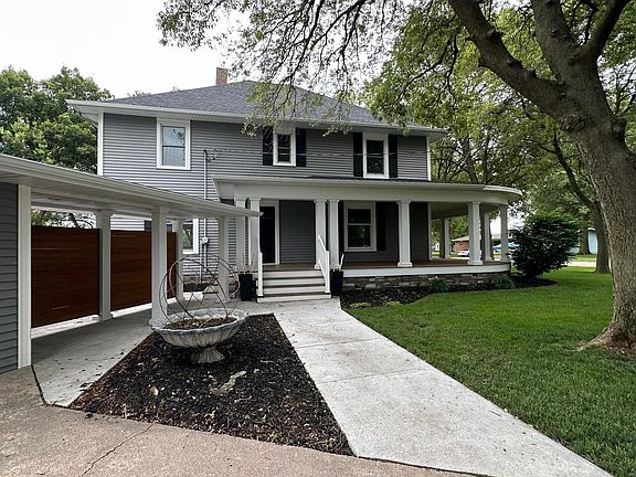 Come see this charming freshly painted farmhouse that sits on a half-acre. It boasts original woodwork, a fireplace with built-ins, a sunny eat-in kitchen, large bathrooms, 3 bedrooms + a 4th room for an office/workout room. This home has plenty of space and privacy with a 3+ car garage, private patio, and beautiful wrap around porch.