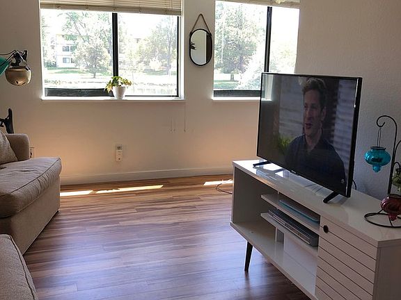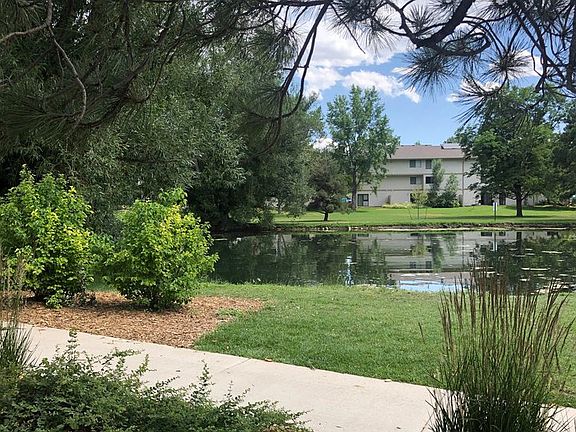 Wall of windows overlooks Heatheridge Lakes. Light and bright condo with newly installed laminate floors and white baseboards. Freshly painted with inviting colors. Tile at entry, kitchen and bathroom. New water heater. Oak kitchen cabinets. All appliances included. Easy access garden-level unit. Laundry, mail and pool is nearby. End unit with open space and lake out your front door. CSU and the stadium are less than a mile away. Many walking trails and access to Spring Creek Trail and the Foothills. Central A/C and GFA heat, low utility bills. HOA covers water/sewer. This neighborhood is tucked away for a private feel.