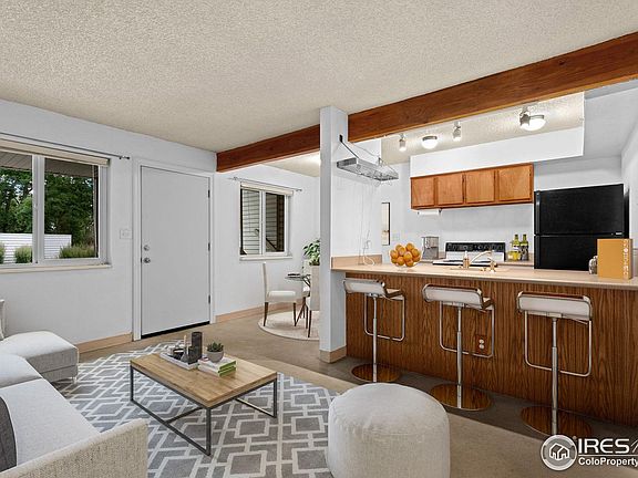 Main level living in the heart of Fort Collins for $217,500! This home is tucked in at the quiet end of the street and includes1 bedroom and 1 bathroom, updated solid surface countertops and an updated bathroom. New furnace and A/C in 2023, new water heater in 2020 and new electric panel. This home is ready to go ! The subdivision has fantastic amenities, including beautiful green spaces, pool and a pond. Close to the Spring Creek Trail, Red Fox Meadows and walking distance to CSU.