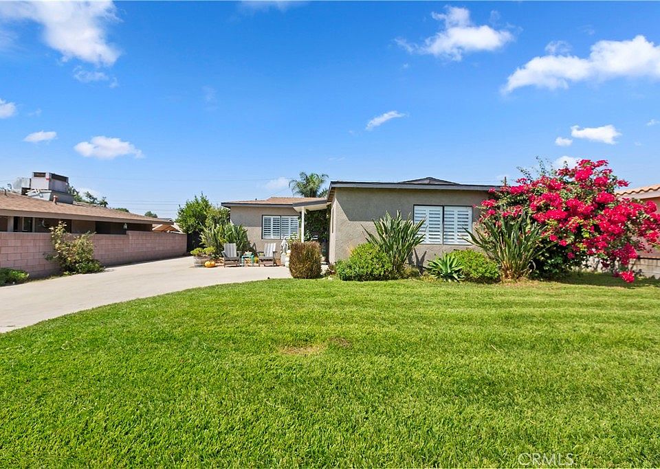 Marvelous and spacious home on a street that rarely has a house for sale. Attractive interior with 3 bedrooms, 1.75 baths, large family room, indoor laundry, spacious updated kitchen with granite counters, walk-in pantry, lots of cupboards with under cabinet lighting, large single-basin farmhouse style sink. Fans in most rooms & newer recess lighting, lovely crown molding and white shutters throughout. Many updated features. Large lot with block walls. Long, long driveway able to park multiple vehicles. Double metal gate. RV parking possible in front of 2 car detached garage with work bench and shelves. Side yard could be a potential dog run area. The big backyard has lots of mature shrubs and plants and plenty of room for a garden, covered patio, expansive area with concrete and flagstone pavers for all those parties and wheeled toys. Included in sales price: washer and dryer, range and refrigerator!!