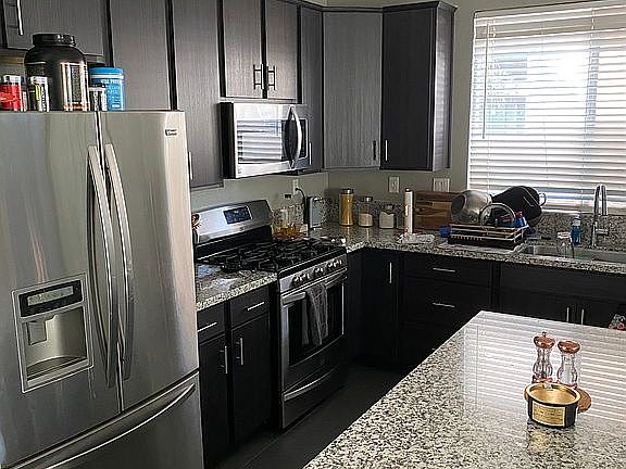 House has been drastically upgraded with new cabinets, granite counter tops, tile floor downstairs and new carpet upstairs.