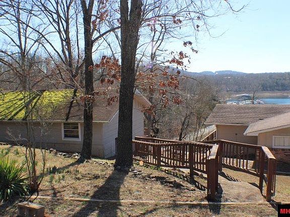 Great opportunity to own a true lake home located on Bull Shoals Lake border govt. strip : This rare opportunity doesnt come around that often w a home overlooking Bull Shoals Lake Boat Dock. Lake home offers 2 bed 1 bath upstairs w hardwood flooring, new kitchen cabinets & counter tops. Lower level features, bedroom/living area, kitchen & bath. Besides the 2 car detached garage the covered rear deck is great for relaxing watching the boats. Many updates but home needs a little TLC