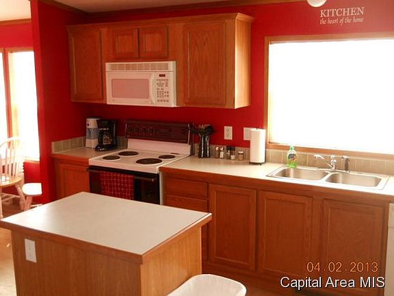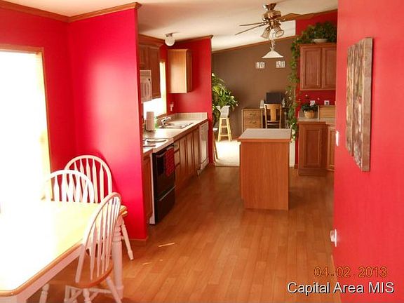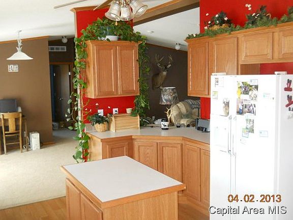 Very well maintained manufactured home on 5 acres just outside of town. Large eat in kitchen with island counter. Home has vaulted cielings, a large master suite with very nice bath and walk in closet. Mud/Laundry room. 2x6 Walls, 3 ton central air, city water. Nice view of timbers in the back yard. All electric home. South School district!