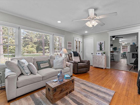 Welcome to this meticulously maintained 1962 brick ranch home, perfectly nestled on a spacious 1.5-acre lot just 5 minutes from Downtown Wendell. This one-story gem combines classic charm with modern updates, offering an ideal blend of comfort and convenience. The home features a new HVAC system installed in 2022 with updated ductwork for year-round comfort. Energy efficiency and longevity are ensured with updated vinyl windows and a durable metal roof. Inside, you'll find whole home 2.5'' faux wood blinds, a new stove, range hood, and appliances including a refrigerator, washer, and dryer that convey with the home. Ample storage is provided with multiple detached storage sheds and abundant interior storage space. Elegant touches such as crown molding, extensive millwork, and real hardwood floors add a touch of sophistication throughout. Ceiling fans in all bedrooms and the living room enhance comfort. The three-vehicle carport offers ample covered parking. Enjoy the tranquility of rural living with the convenience of being just minutes away from Downtown Wendell and in close proximity to multiple highways making any commute a breeze. This home is perfect for those seeking single-story living with a blend of vintage charm and modern amenities. Don't miss out on this rare opportunity to own a piece of Wendell's history with all the conveniences of today.