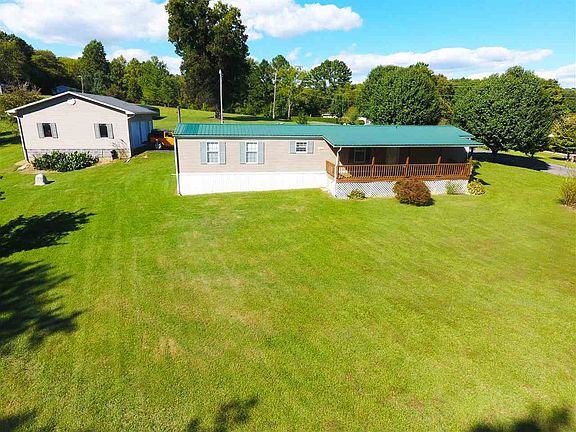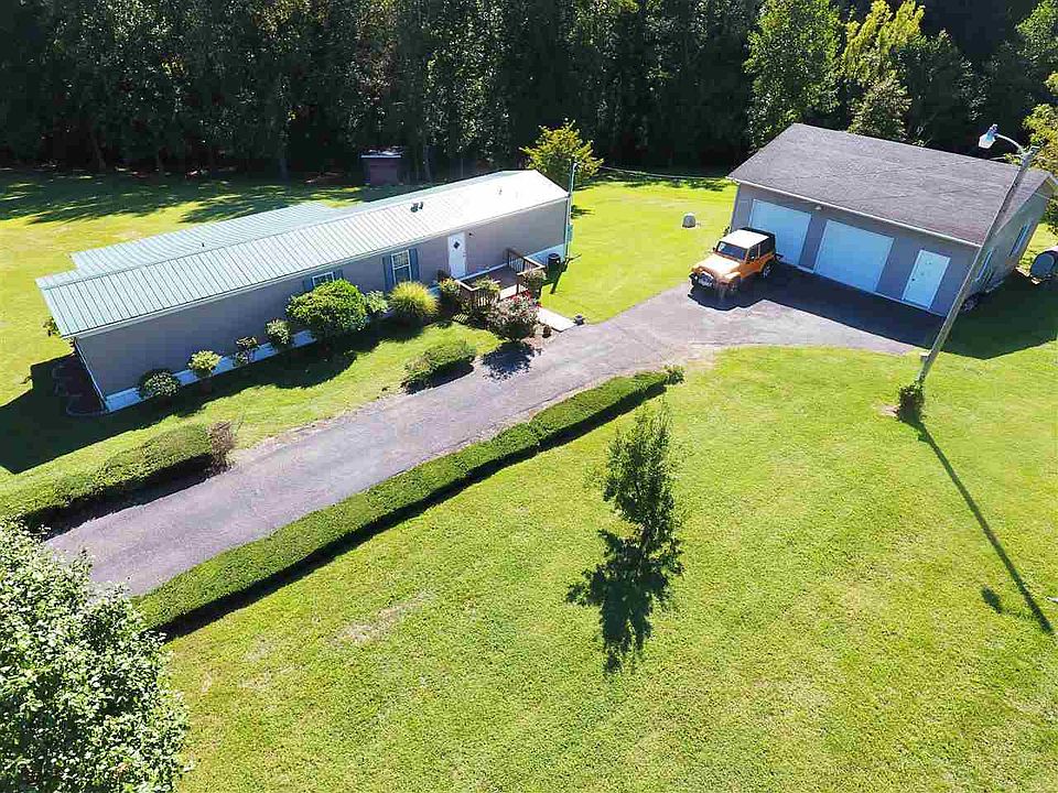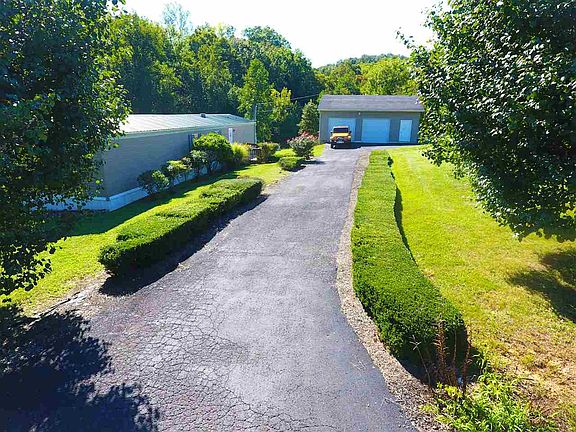 Manufactured home with large 28 x 32 detached garage located on a beautiful 4.77 acres. A metal roof has been installed and has a large covered rear porch with small front deck. The 28 x 32 detached garage has tall ceilings with plenty of room to park 2 cars inside and still have a work area. The 4.77 acres is like a park setting. Beautifully landscaped with paved driveway , small storage shed and borders a creek / small stream. Land also contains 2 shipping containers for storage and a separate tractor/car she'd with half walls.