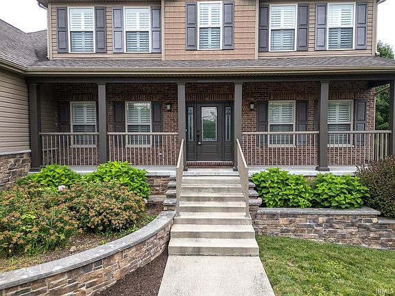 Beautifully maintained home in The Orchard, just minutes from Purdue University! 5 bedrooms, 3 full and one half bathrooms. Finished basement with 3-car side-loading garage. This beautiful, custom-built Silverton Home offers nearly 4000 sq ft including a first-floor master bedroom with en suite and massive walk-in closet. Formal dining room with wood floors. Beautiful coffered ceilings in family room, just off kitchen. Fabulous kitchen has double-ovens, pantry and vegetable sink in island. Plantation shutters. Daylight windows in basement with 2nd fireplace, plus 3rd full bath and bedroom with egress. Ample unfinished, usable storage space. Large deck overlooking generous yard.