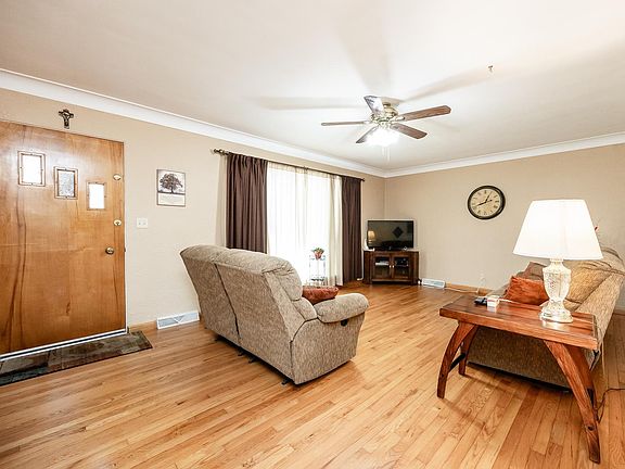 This one is an absolute jewel and has a NEW Roof (2023) too! You will love this all Brick ranch style home located on a quarter acre lot with its gorgeous hardwood floors, semi-updated Kitchen with Luxury Vinyl Tile, 2 bathrooms and a nice open floorplan! The Kitchen is large and offers tons of cabinets, a double oven and plenty of counter space. There are 3 good sized bedrooms with more hardwood floors underneath the current carpeting. You will find the updated landscaping to be absolutely BEAUTIFUL in both the front and rear of the home. The fenced backyard is a peaceful place to relax under the covered patio and an added benefit is that you would have no neighbors behind you! Lastly, the two-car oversized garage is a plus too, giving you extra storage. Washer and Dryer Stay. Seller will pass the municipal occupancy inspection prior to closing.