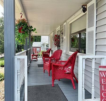 This beautiful three bedroom Cape Cod style charmer is a hub for outdoor entertainment. The entire fenced in back yard has been converted into a relaxing gorgeously landscaped private space for eating, swimming, sunbathing, and barbecuing. The hot tub and party lighting are included. The professionally installed heated above ground pool is 21 ft in diameter and 54 inches high. The backyard entrance takes you to enclosed sunroom and leads into the family room and sunny kitchen. The kitchen flows directly into a beautiful dining room flooded with natural light. Downstairs bedroom has large closet and is adjacent to full bath with wide doorway and shower. Two bedrooms and full renovated bathroom on second floor. Finished basement has a kitchen and bar area and carpeted rooms for exercise equipment or furnishings. Laundry and mechanicals are in separate room and another set of basement stairs lead up to enclosed storage area and back porch sunroom.