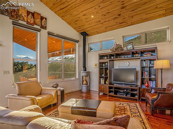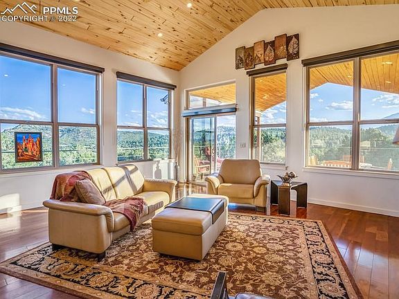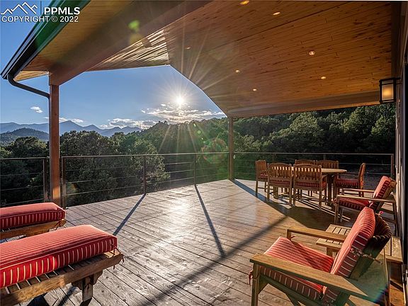 Nestled on 35.91 acres of lush woodland within the Buck Mountain subdivision, this fantastic property is ready to be your holiday home or year-round residence. This property comes fully furnished for the lucky occupiers to move in and start enjoying everything it offers right away. Two bedrooms, adjoined by stylish ensuite bathrooms, featured in the 1964sqft home. Elegant fixtures and finishings add the perfect balance of comfort and luxury with cherry floors, hickory cabinets, and knotty alder doors. At the same time, the heart of the house is sure to be the open plan living/kitchen area on the upper level. The kitchen boasts a breakfast bar and two dishwashers, and the entire space has aspen vaulted ceilings overhead and is lined with large windows that pour in abundant natural light. Other features include a spacious garage to store your tools and toys and a fireplace to keep everyone cozy. Step outside onto the massive deck and dine alfresco while enjoying beautiful panoramic views of Sangre De Cristo Mountain.