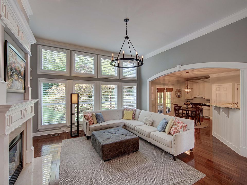This gorgeous home offers fantastic location, club amenities and interior designer appointed upgrades including JW custom cabinetry, granite, and plantation shutters throughout, hardwood on main, extensive trim, expansive owner's suite with large, walk in closet boasting custom designed wood shelving, heavy glass shower door and travertine in owner's bath. INCREDIBLE covered porch backing up to fenced, private backyard!
