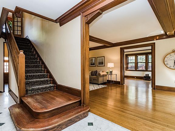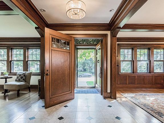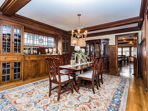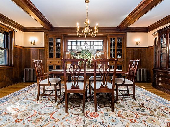 Exquisite 6BR/4BA/3CAR Brick Colonial - on large corner lot. Home is full of historic details & high-end upgrades throughout. Step into grand foyer w/ marble floors & exposed staircase. Dining room w/ built-in cabinet, coffered ceilings, plate rail & sight lines through to large updated eat-in kitchen w/ Corian counters, custom oak cabinets, commercial-grade appliances, including 6-burner Viking range & views to fully fenced backyard. Formal living room w/ gorgeous wood mantle & french doors to adjacent sunroom/family room. Mudroom from backyard/garage & 1/2-bath round out the main level. 2nd floor includes 3 bedrooms, 2 bathrooms, den, study, & spacious owners suite w/ sitting area & fireplace. 3rd floor includes full bath, 2 guest bedrooms & cedar closet. Finished LL includes family/theater space, craft room, laundry & 3 large storage spaces. Fenced yard. Idyllic neighborhood & quiet street. Central air & newer boiler, electric, storm windows, garage doors, & irrigation. A must see!