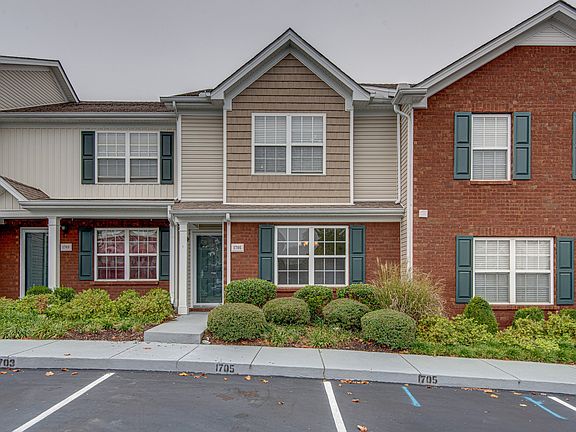 Centrally located & convenient to Brentwood, Nolensville, & Nashville. Open floor plan w/ 9 ft ceilings as well as hip, durable flooring throughout entire townhome. NO carpet! 2 primary suites upstairs - could be great roommate plan. Huge master suite has vaulted ceiling, spacious walk-in-closet, & updated bathroom w/ double vanities. 1st floor features living room, kitchen w/ eat-in kitchen area, spacious dining room (or possibly home office), & half BA. Kitchen has granite, tile backsplash, some stainless appliances, & a large pantry w/ extra shelves & storage. Private fenced in patio & outside storage backing to green space (common area). 2 parking spots out front. HVAC 2018 & brand new roof. Washer, dryer, & fridge all included w/ acceptable offer. Landscaping to be replaced soon.