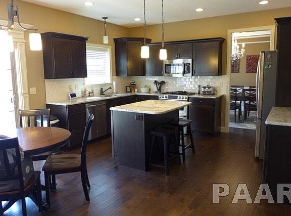 Gorgeous 2 story home in Washington's Mallard Crossing Subdivision. Over 2,400 fin. sq. ft., 2 story entry with angled staircase, main floor den/office w/ French doors and built-in shelves. Kitchen features granite tops and island, and tile backsplash. Open fireplaced great room. Custom blinds & plantation shutters. Hardwood throughout entry-kitchen-great room-office. Beautiful master suite with cathedral ceiling, whirlpool tub, seperate shower and large walk-in closet. 2nd floor laundry. Wonderful stone patio w/ Pergola and overlooks the nicely landscaped yard.